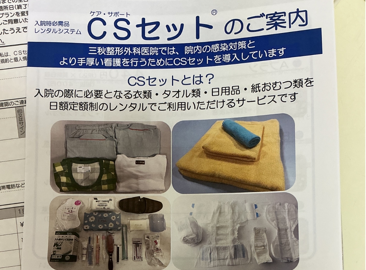 下記の用品は当院にてレンタルを専門業者に委託しております。レンタルを希望されない方はご自身でご用意ください。